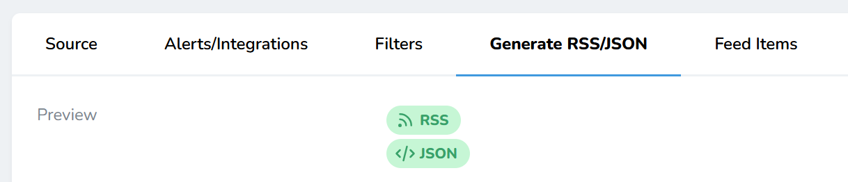 Once you’ve added a feed to Feed Control, go into its details, and you’ll be able to find a Generate RSS/JSON section.
