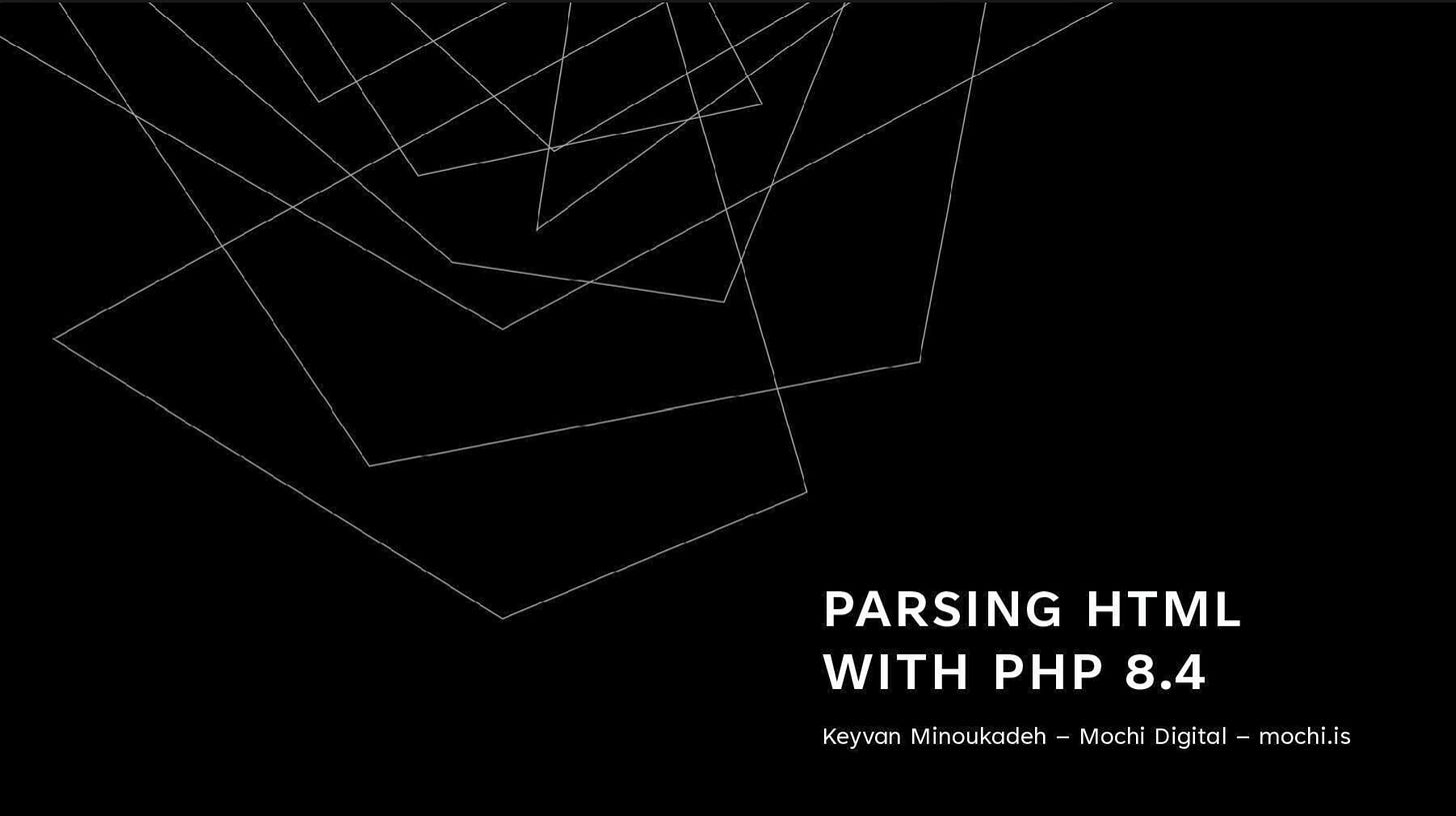 Keyvan recently gave a talk at the International PHP Conference in Munich about parsing HTML with PHP. If anyone’s interested in the slides, they are now up at SpeakerDeck.